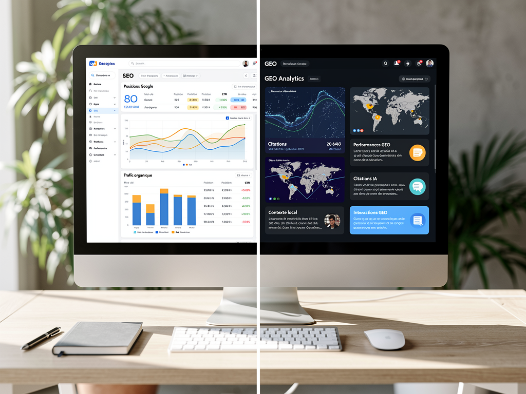 SEO ou GEO ? La question est sur toutes les lèvres des dirigeants et marketeurs en 2026. D’un côté, le référencement classique qui a fait ses preuves depuis vingt ans pour générer du trafic qualifié. De l’autre, le GEO (Generative Engine Optimization) qui promet la visibilité dans les réponses IA de ChatGPT, Gemini et Perplexity. Certains annoncent la mort du SEO, d’autres considèrent le GEO comme un simple buzzword marketing. La réalité est bien plus nuancée — et surtout plus stratégique. Car si ces deux disciplines partagent des fondations communes, elles divergent sur des points essentiels et créent même de véritables tensions opérationnelles que personne ne mentionne. Ce guide déconstruit les vraies différences, identifie les synergies et révèle les antinomies qui changent la donne pour votre stratégie de visibilité.